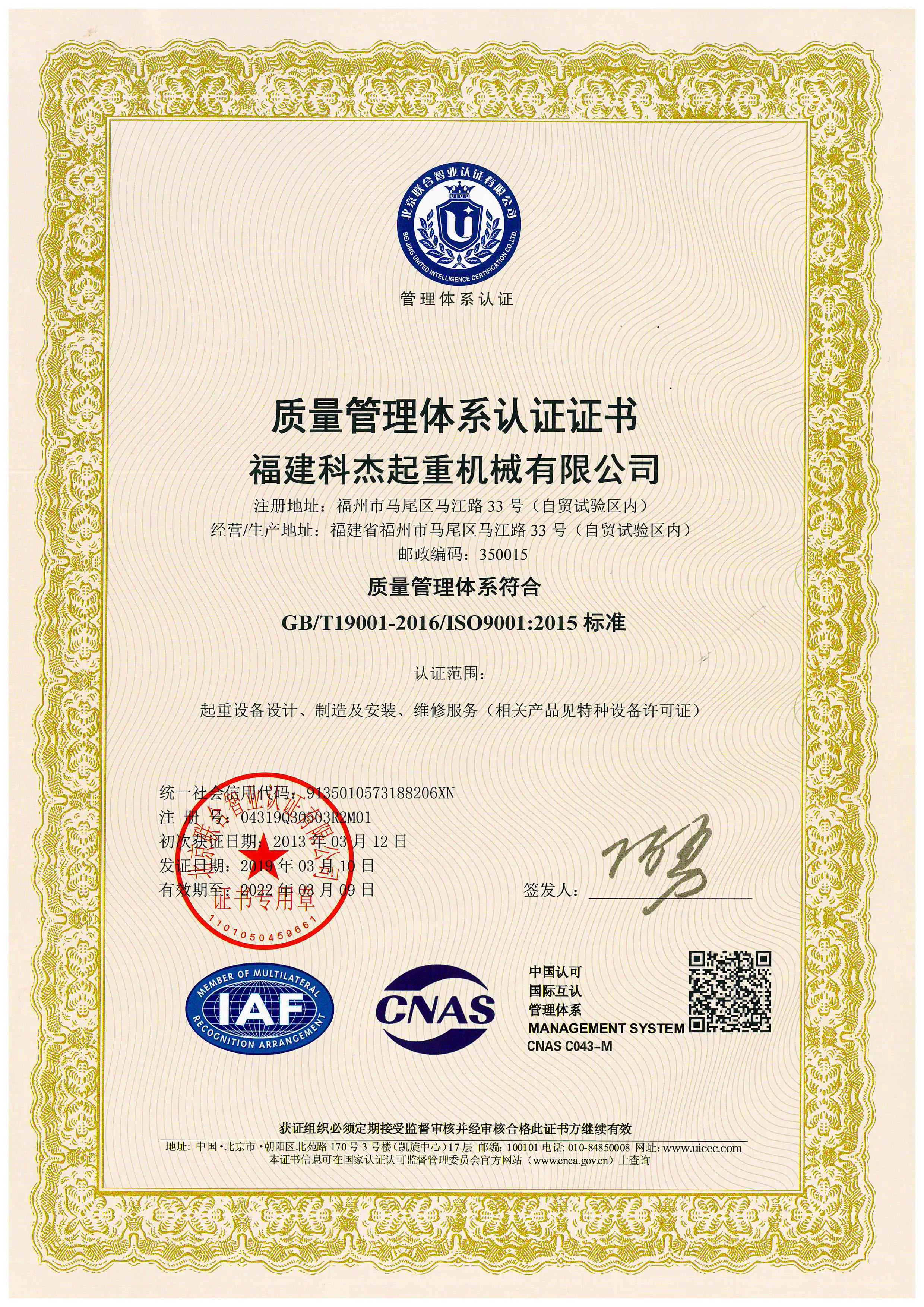 2017-2021年起重特种设备制造许可证TS2410962 |