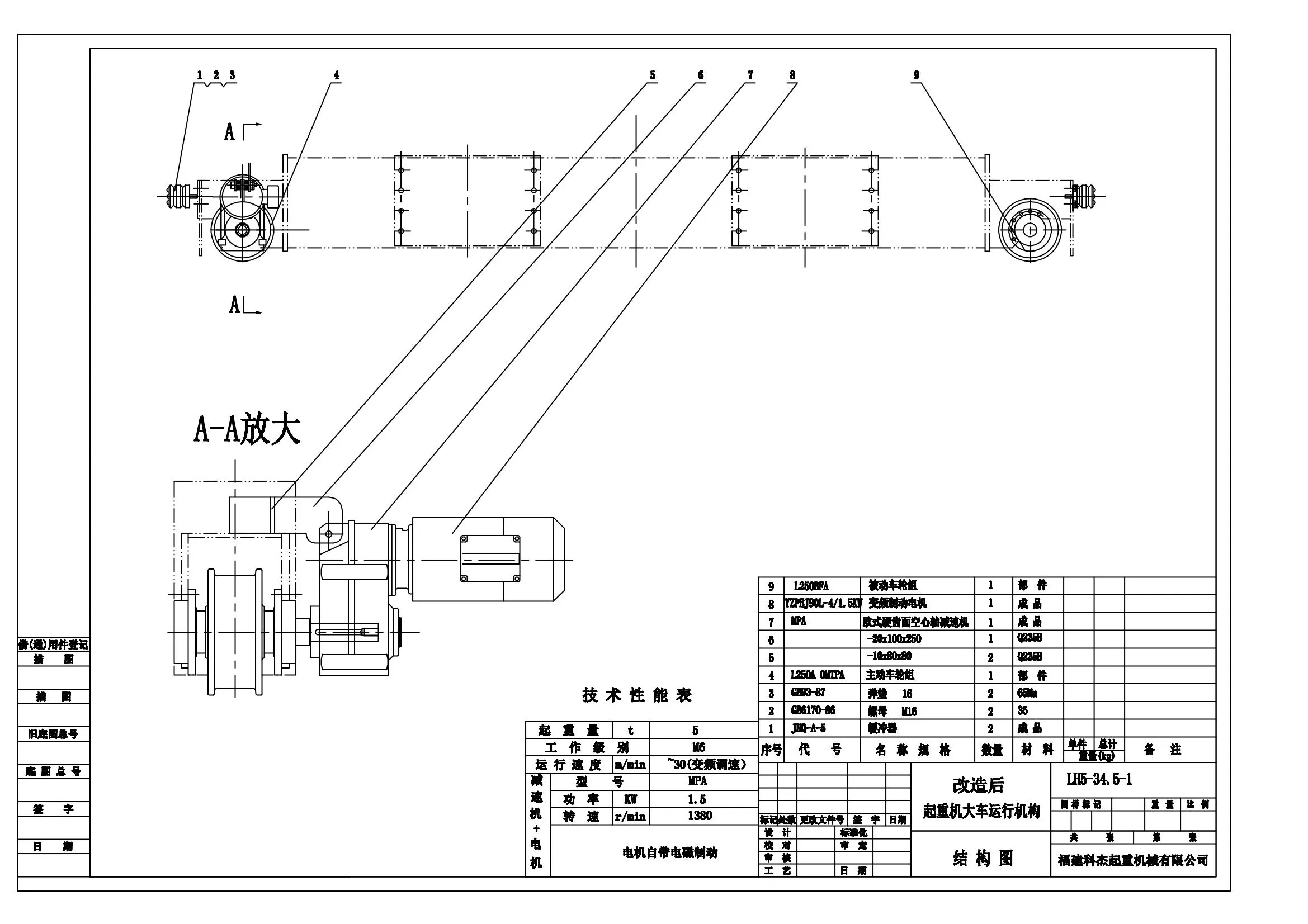 将开式传动改为由内联系传动车轮配装高精度、硬齿面减速机+起重专用高工作制变频制动电机+变频器或软启动电机构成的闭式传动系统。该系统不仅解决了开式传动的弊病还使得起重机运行机构工作制达到M6及以上。